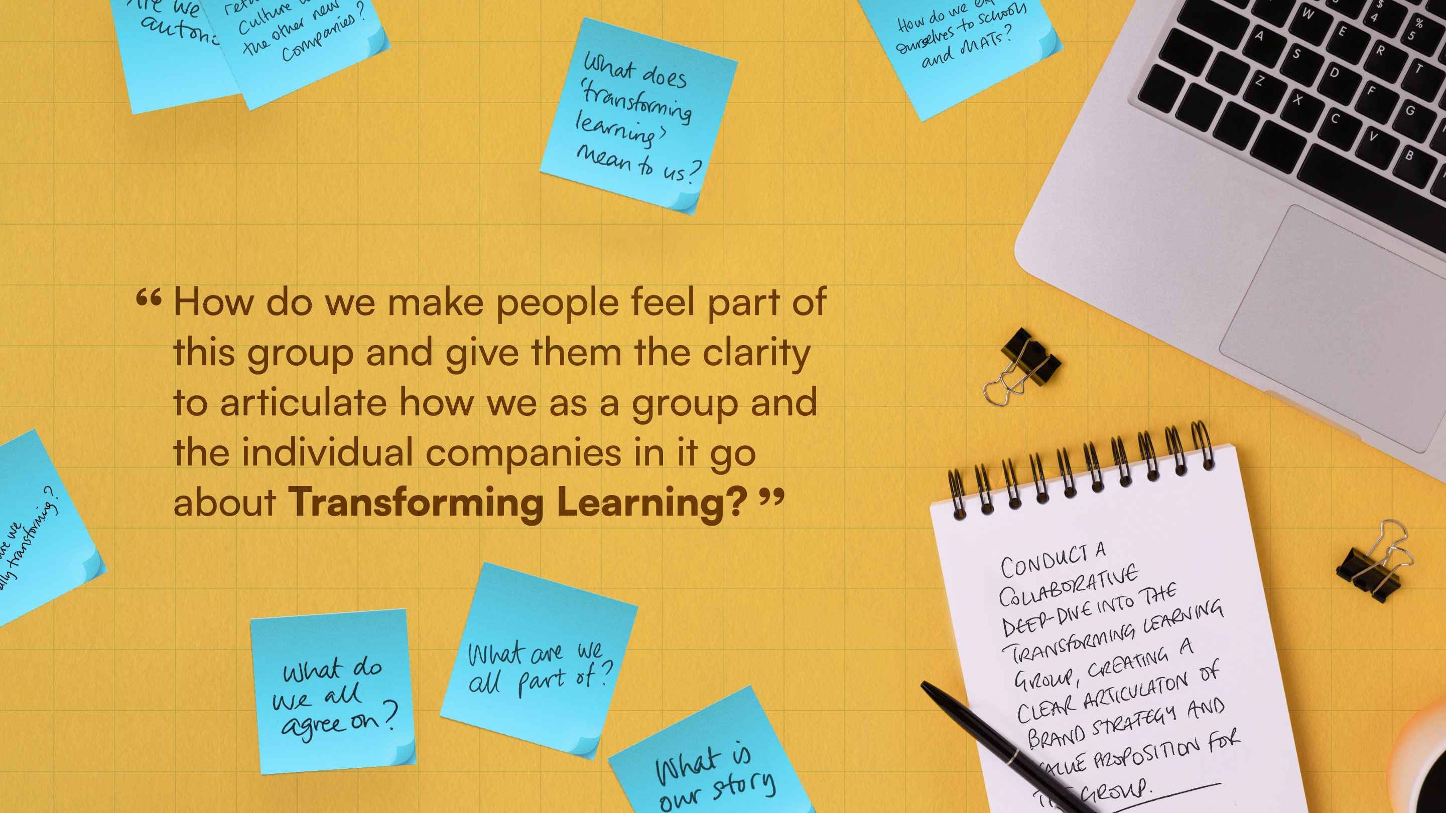 We didn't start with logos or colours. We started with the hardest questions: Who are you? Why do you exist? What makes you remarkable? What does Transforming Learning really mean?